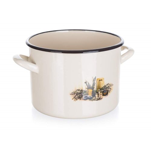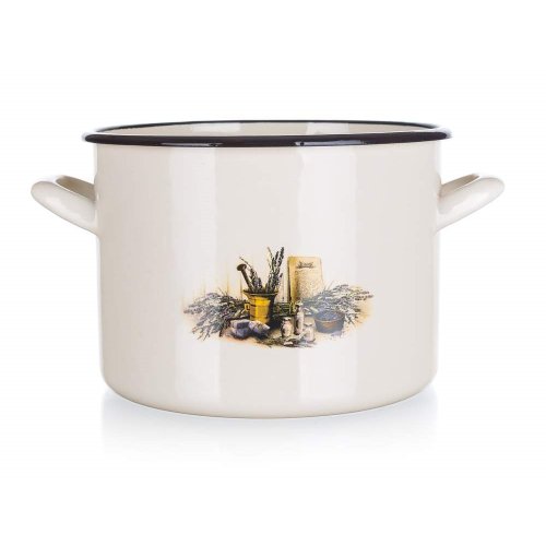 Hrnec smaltovaný 20 x 17 cm LAVENDER, vyrobeno z plechu tloušťky 0,8 mm, 2vrstvý smaltovaný vnitřní a vnější povlak s dekorem LEVANDULE, rolovaný okraj.