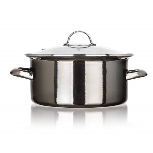 Smaltovaný hrnec METALLIC Black 3,7 l, se skleněnou poklicí. Rozměry: průměr 22 cm, výška (bez poklice) 13 cm. Barevné provedení černá metalíza. Hrnec lze používat na všechny typy varných desek včetně indukce.