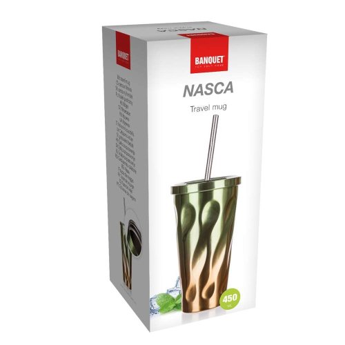 Cestovní dvoustěnný hrnek NASCA o objemu 450 ml, je vhodný na horké a studené nápoje. Vnější i vnitřní část hrnku je vyrobena z kvalitní nerezi, uzávěr je z plastu a nerezi. Součástí hrnku je nerezové brčko. Hrnek není vhodný do myčky. Díky dvoustěnnému provedení udrží nápoj delší dobu v požadované teplotě.