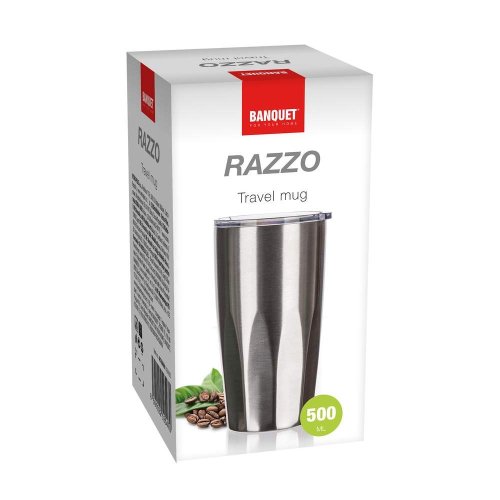 Cestovní dvoustěnný hrnek RAZZO o objemu 500 ml, je vhodný na horké a studené nápoje. Vnější i vnitřní část hrnku je vyrobena z kvalitní nerezi, uzávěr je z plastu. Hrnek není vhodný do myčky. Díky dvoustěnnému provedení udrží nápoj delší dobu v požadované teplotě.