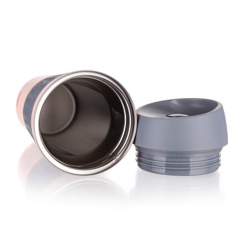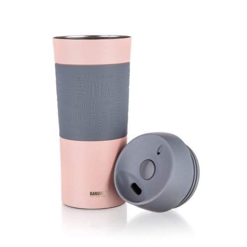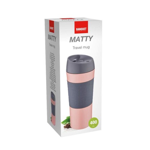 Cestovní hrnek MATTY dvoustěnný, je vhodný na teplé i studené nápoje. Vnější část je vyrobena z nerezu 201 a vnitřní část z nerezu 304, rukáv je silikonový. Využitelný objem je 420 ml.