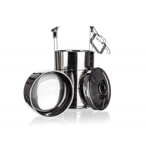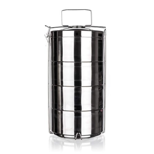 4dílný nerezový dvoustěnný jídlonosič AKCENT je určený k přenášení potravin a hotových pokrmů. Sada obsahuje 4 nerezové misky o průměru 16 cm a výšce 7,5 cm. Objem každé misky je 1,1 l. Díky dvoustěnnému provedení je praktický pro uchování teplého pokrmu během přenášení.