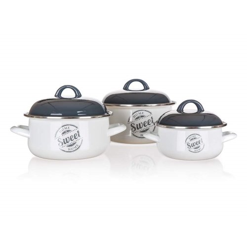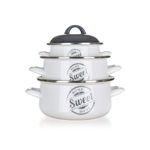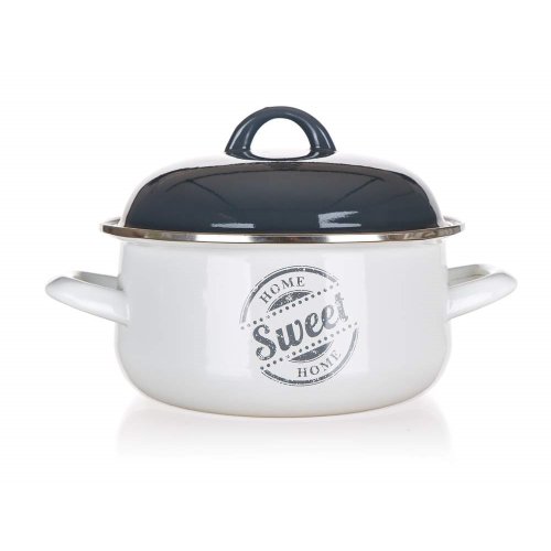 Smaltovaný kastrol o průměru 24 cm v bílé barvě s dekorem SWEET HOME a s poklicí v šedé barvě je vhodný na vaření různých pokrmů. Můžete mýt v myčce na nádobí. V nabídce máme další produkty z kolekce SWEET HOME.