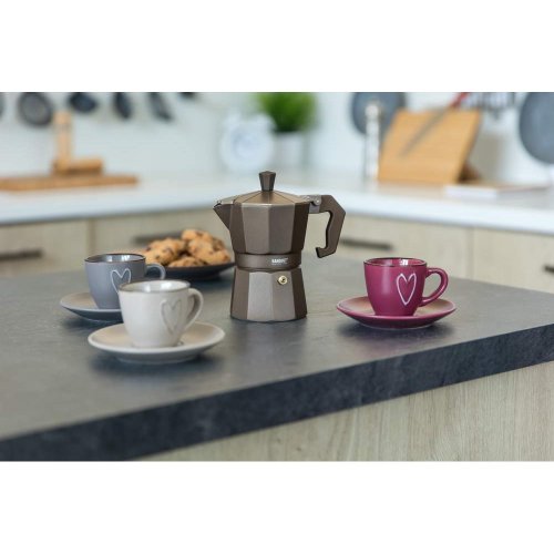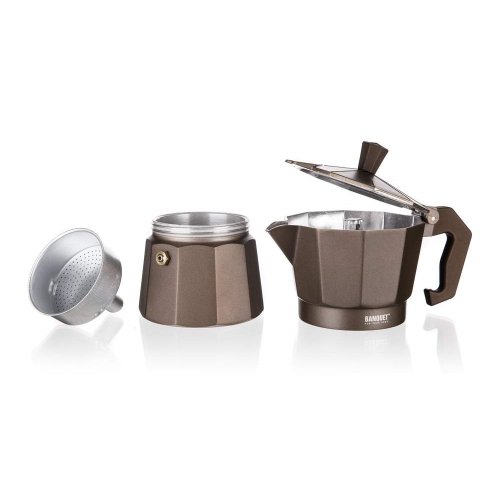 Kávovar CAMPI na 6 šálků je tradiční kávovar pro domácí přípravu chutné silné kávy. Je vhodný pro použití na plynových, elektrických a sklokeramických deskách. Hliníkové tělo kávovaru již po několika šálcích získá patinu, která je pro správnou chuť kávy nepostradatelná. Kávovar je opatřen bezpečnostním ventilem. Využitelný objem 260 ml. Kávovar není vhodný pro mytí v myčce.