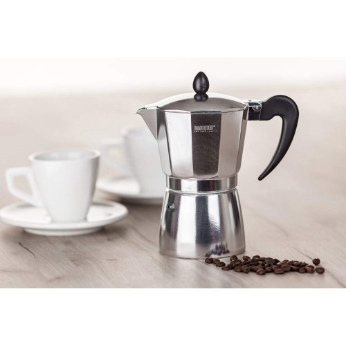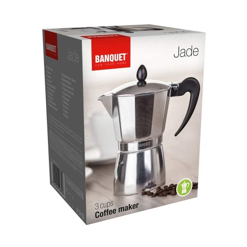 Kávovar JADE 3 šálky je tradiční kávovar pro domácí přípravu chutné silné kávy. Je vhodný pro použití na plynových, elektrických a sklokeramických deskách. Hliníkové tělo kávovaru již po několika šálcích získá patinu, která je pro správnou chuť kávy nepostradatelná. Kávovar je opatřen bezpečnostním ventilem. Využitelný objem 150 ml. Kávovar není vhodný pro mytí v myčce.