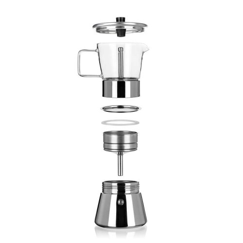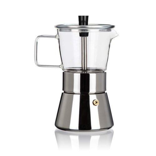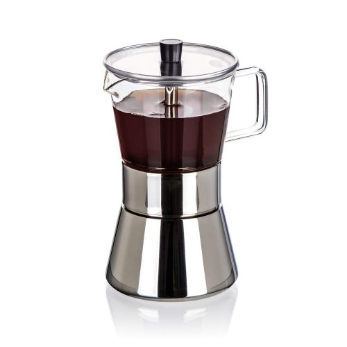 Kávovar TRISHA, 4 šálky je tradiční kávovar pro domácí přípravu chutné silné kávy. Je vhodný pro použití na plynových, elektrických, sklokeramických a indukčních deskách. Kávovar je opatřen bezpečnostním ventilem. Využitelný objem 200 ml.