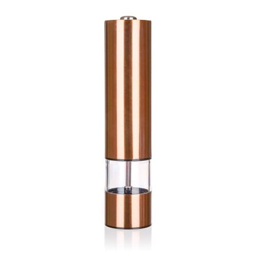 Elektrický mlýnek na koření COPPER je dodáván v nerezovém provedení s měděnou transparentní barvou na povrchu s akrylovými zásobníky. Vnitřní část mlýnku tvoří keramická mlecí mechanika, zdroj napájení 4xAA (tužkové) baterie, které nejsou součástí výrobku. Rozměry mlýnku: výška 22,5 cm, průměr 5 cm.