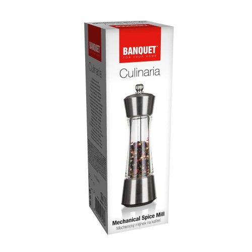 Mechanický mlýnek CULINARIA je dodáván v nerezovém provedení, zásobníky jsou akrylové. Vnitřní část mlýnku tvoří kvalitní keramická mlecí mechanika. Rozměry mlýnku: výška 17 cm, průměr 5,5 cm.