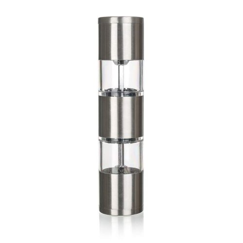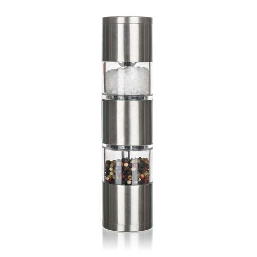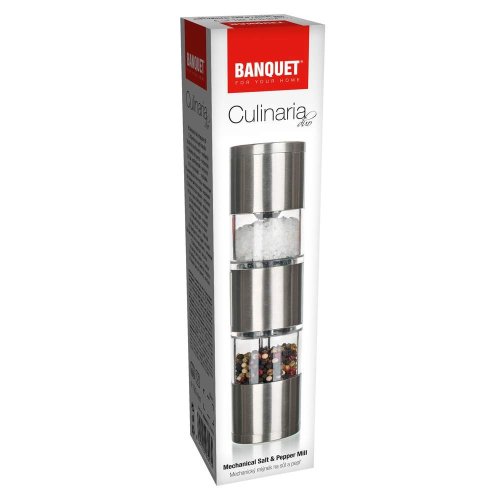 Mechanický mlýnek na sůl a pepř CULINARIA Duo je dodáván v nerezovém provedení, zásobníky jsou akrylové. Vnitřní část mlýnku tvoří keramická mlecí mechanika. Mlýnek je velmi praktický, sůl i pepř máte neustále při ruce díky systému 2v1. Rozměry mlýnku: výška 19 cm, průměr 4,5 cm. Na mlýnku si můžete nastavit hrubost mletí dle vlastní potřeby.