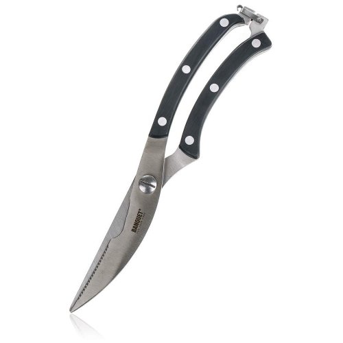 Nůžky na drůbež CULINARIA 25,5 cm jsou vybaveny zahnutým ostřím pro snadnou manipulaci a rychlé porcování drůbeže. Nůžky jsou vyrobeny z oceli, hladké ergonomické rukojeti jsou vyrobeny z plastu v černé barvě a na konci jsou opatřeny pojistkou.