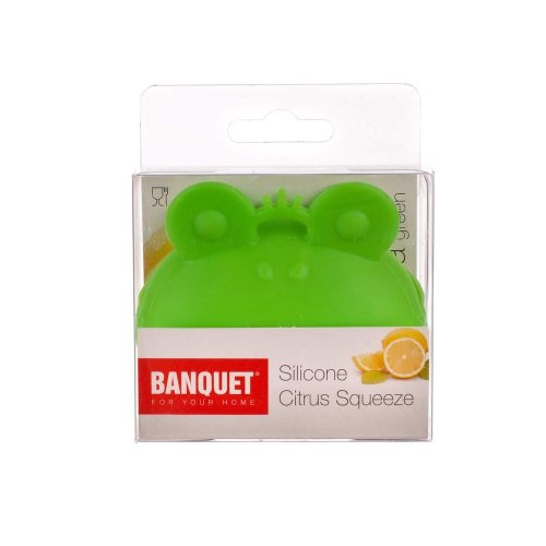 Silikonový odšťavovač na citrusy žabák CULINARIA green 8 x 7 x 4 cm. Silikon je velmi populární materiál, který pro své jedinečné vlastnosti našel své uplatnění i v kuchyni. Vyrábí se z něj různé druhy forem na pečení, vály a válečky na těsto, stěrky, mašlovačky, různé druhy kuchyňské náčiní a mnohé další výrobky.