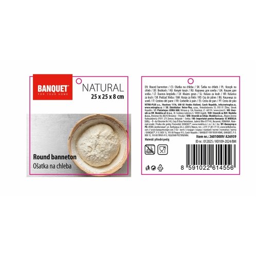 Kulatá ošatka z přírodního pedigu o rozměru 25 x 8 cm je určena na kynutí chleba. Po použití se doporučuje ošetřit pouze vlhkým hadříkem.