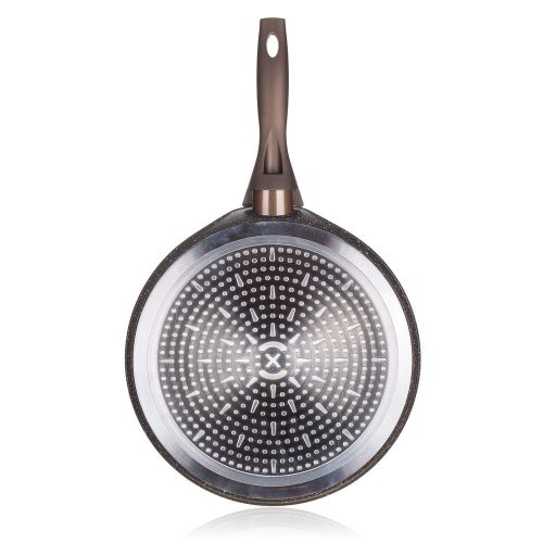 Hliníková litá kovaná pánev na palačinky PREMIUM DARK BROWN s nepřílnavým povrchem, rozměr 24 x 1,6 cm, tmavě hnědý granitový dekor, tloušťka stěny 3 mm, plně indukční dno, soft-touch rukojeť. Nepřilnavý povrch je velmi tvrdý a odolný proti poškrábání. Pánev je odolná proti nárazu a deformaci tvaru.