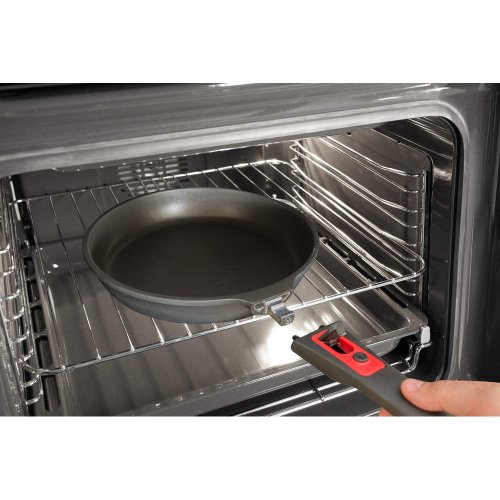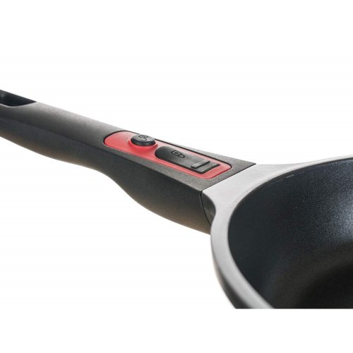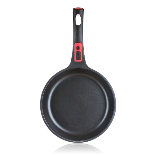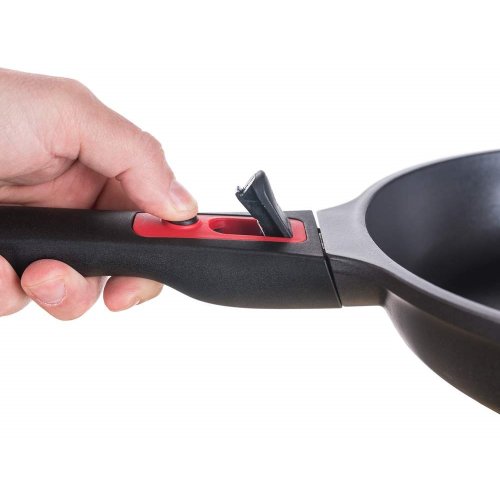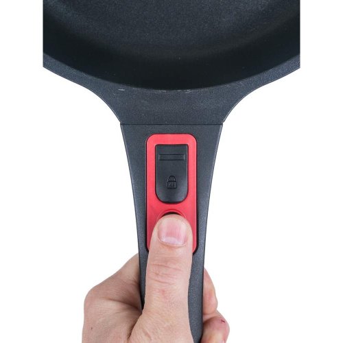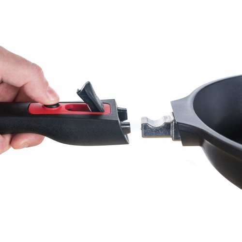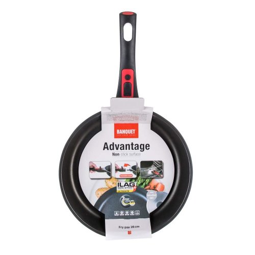 Litá hliníková pánev ADVANTAGE 28 x 5,5 cm s odnímatelnou rukojetí má vnitřní 3-vrstvý značkový nepřilnavý povrch ILAG ULTIMATE Swiss Technology a vnější černý 2-vrstvý žáruvzdorný nástřik. Odnímatelná rukojeť pánve umožní použití nádobí v troubě a k úspoře místa v kuchyňské lince. Pánev je vhodná na všechny typy varných desek.