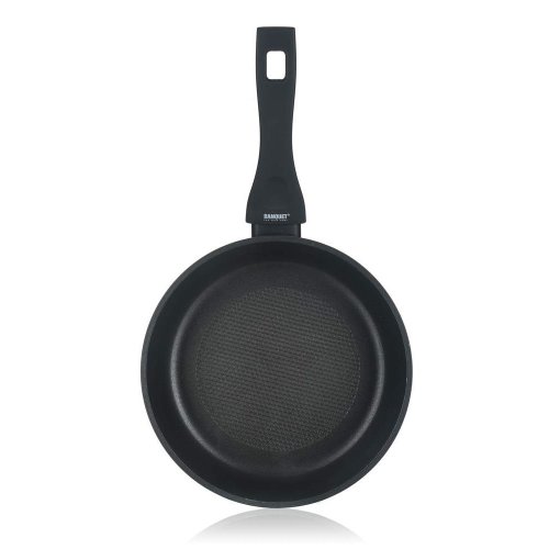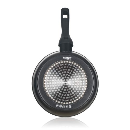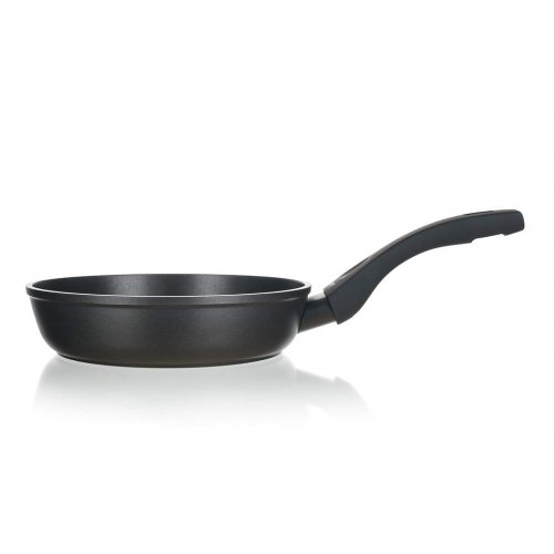 Hliníková kovaná pánev GRAZIA o rozměru 20 x 4,9 cm se značkovým nepřílnavým 3vrstvým povrchem ILAG PREMIUM, s vnějším 2vrstvým žáruvzdorným nástřikem, barva černý mat, zesílena tl. stěny 4,0 mm, indukční dno s piktogramovým laserovým potiskem.