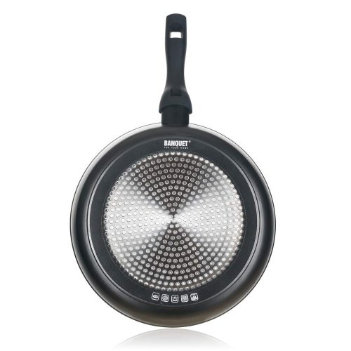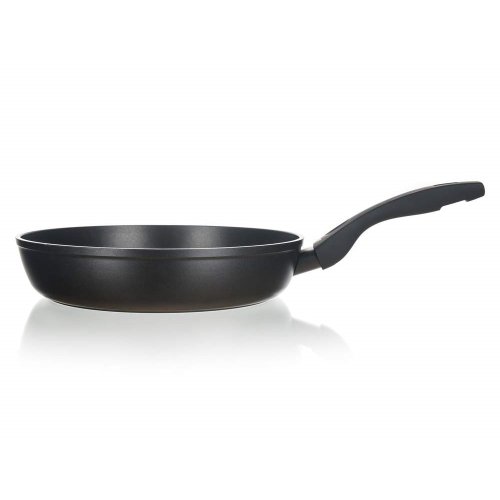 Hliníková kovaná pánev GRAZIA o rozměru 28 x 6 cm se značkovým nepřílnavým 3vrstvým povrchem ILAG PREMIUM, s vnějším 2vrstvým žáruvzdorným nástřikem, barva černý mat, zesílena tl. stěny 4,0 mm, indukční dno s piktogramovým laserovým potiskem.