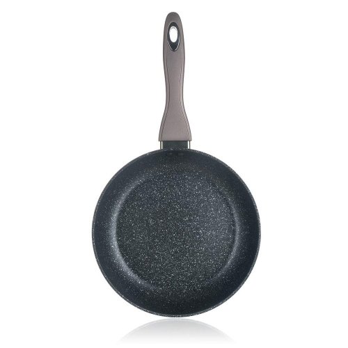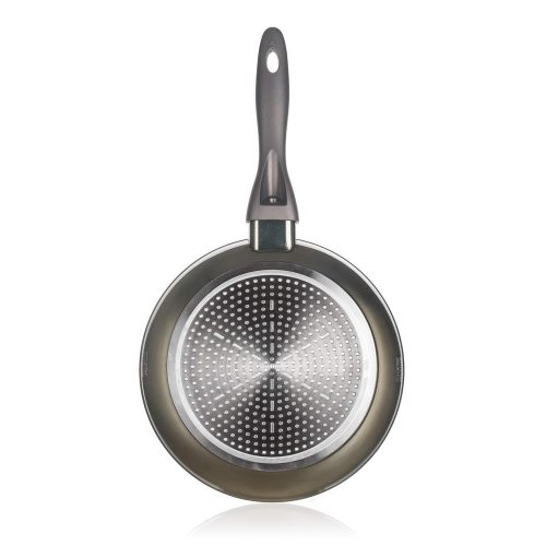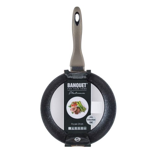 Hliníková litá kovaná pánev METALLIC PLATINUM s nepřílnavým povrchem o rozměru 24 x 4,8 cm, vnější karbon metalický nástřik, tloušťka stěny 3 mm, plně indukční dno, soft-touch rukojeť. Nepřilnavý povrch je velmi tvrdý a odolný proti poškrábání. Pánev je odolná proti nárazu a deformaci tvaru. Vysoká tepelná vodivost zajišťuje rychlé a ekonomické vaření - dlouho drží teplotu.