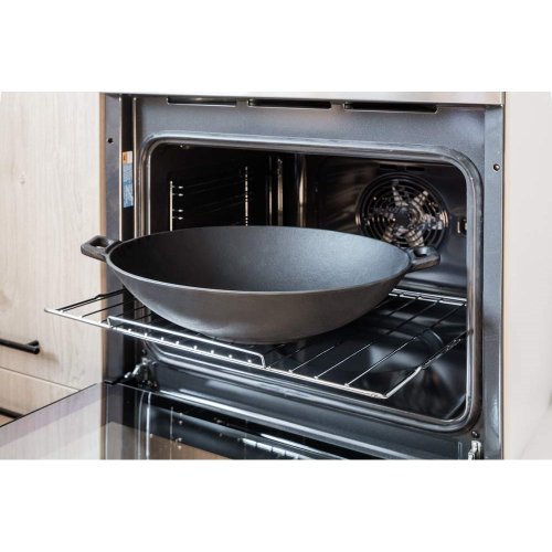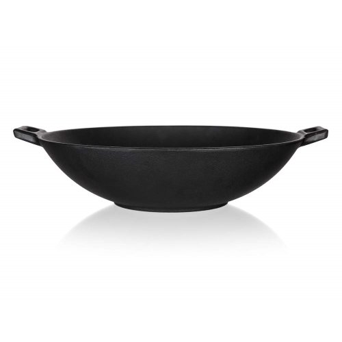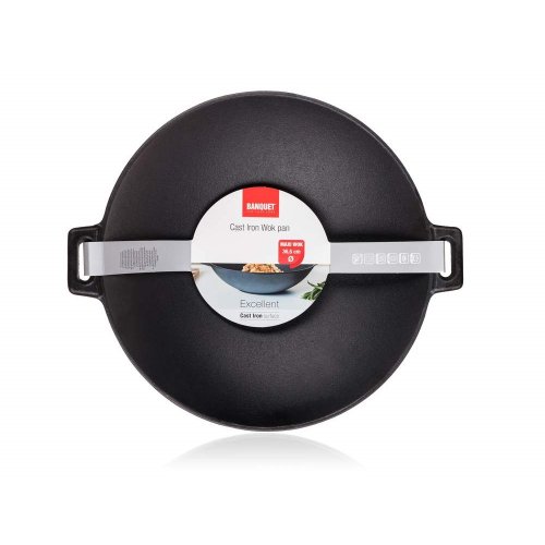 Pánev WOK litinová EXCELLENT průměr 36,5 cm v černé barvě, je ideální pro vaření, dušení, smažení na plotýnce sporáku, stejně tak i pro pečení a zapékání v troubě. Litina je pro vaření a pečení naprosto ideální. Masivní materiál, který jakmile se nahřeje, vydrží dlouho a rovnoměrně rozvádí teplo, díky němuž se pokrm v litinovém pekáči upeče rovnoměrně, za kratší dobu a úsporněji. Před prvním použitím naneste na povrch pekáče rostlinný olej a postupně jej začněte ohřívat v troubě (začněte na mírném ohni a pomalu zvyšujte teplotu). Zapečením oleje získá výrobek svoji nepřilnavost.