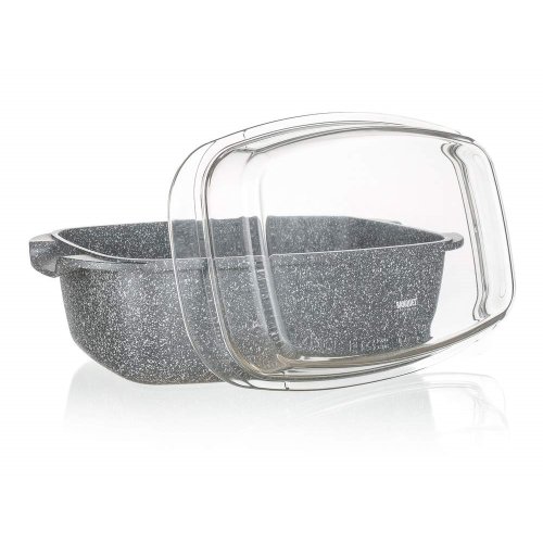 Pekáč GRANITE 5,7 l se skleněným víkem je opatřen nepřilnavým povrchem s granitovým vzorem. Rozměry: 32,5 x 21 x 11 cm, tloušťka stěny 2,2 mm, tloušťka dna 4,7 mm. Pekáč je opatřen celoindukčním dnem pokrytým nepřilnavým žáruvzdorným povrchem. Lze mýt v myčce na nádobí.