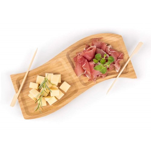 Přírodní podnos z bambusového dřeva velikosti 28 x 13,5 x 1,6 cm je určený především na servírování slaných či sladkých pochutin. Díky děleným dřevěným přepážkám je možné servírovat více druhů pochutin na jednom podnosu. Pokud máte rádi pořádek na stole, bude tento podnos ideální pro vás. Svůj podnos můžete doplnit o další výrobky z řady BRILLANTE BAMBOO.