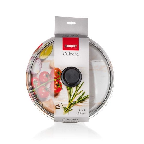 Poklice skleněná CULINARIA 28 cm s plastovým úchytem, se vyrábí z kvalitního varného skla. Výhodou je dlouhá životnost, hygienická nezávadnost a snadná údržba - lze mýt v myčce na nádobí. Poklice je určena pro nádobí a pánve s průměrem 28 cm a vhodným okrajem. Vnější průměr poklice je 29 cm, výška je 9,5 cm a bez úchytu 5,5 cm.
