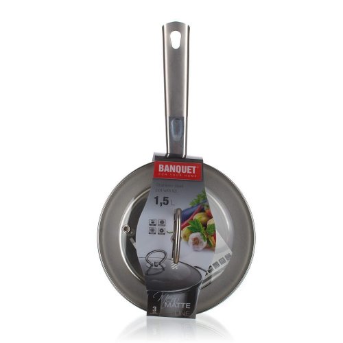 Nerezový rendlík MATTE New Line 1,5 l se skleněnou poklicí, rozměry rendlíku - průměr 16 cm, výška 8 cm. Rendlík lze používat na všechny typy varných desek vč.indukce. Sendwichové dno.