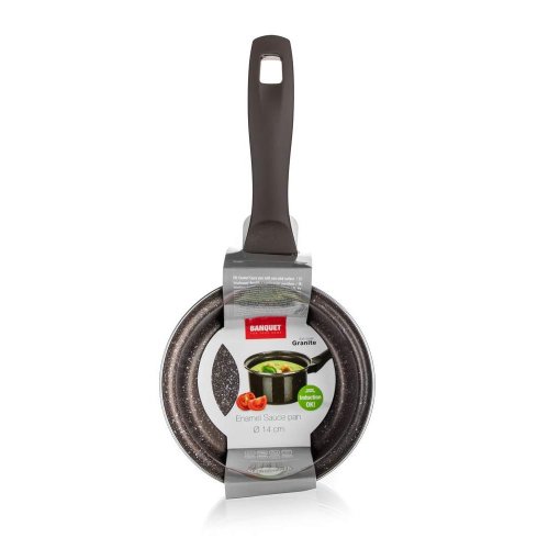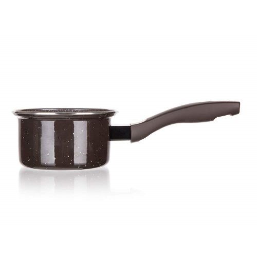 Smaltovaný rendlík o rozměru 14 x 6,5 cm Granite Dark Brown, tloušťka materiálu: 0,8 mm, má 2vrstvý vnitřní nepřilnavý povrch a vnější smaltovaný povrch Dark Brown. Rukojeť je vyrobena z bakelitu se soft touch povrchovou úpravou a dno výrobku je opatřeno piktogramy k použití.