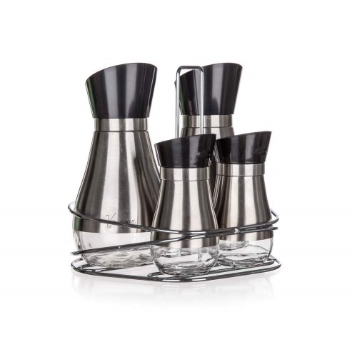 Stolní dochucovací sada AVANZA 4 ks v praktickém stojanu je určena pro domácnost i gastronomická zařízení. Vyrobeno z oceli a skla. Není vhodné do myčky.