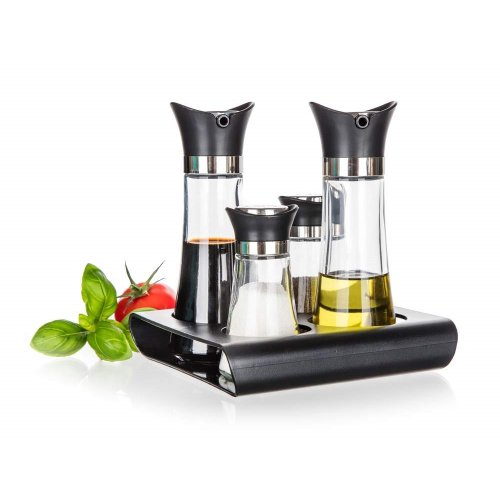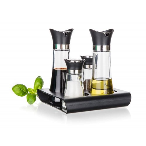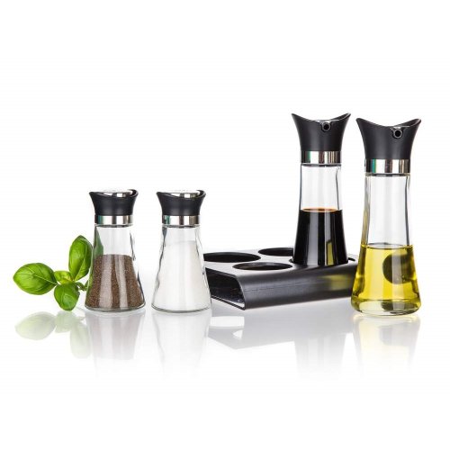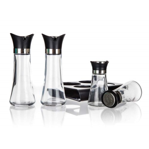 Sada dochucovací EXCELLENT 5 ks, je ideálním pomocníkem ve vaší kuchyni pro dochucování salátů a dalších pokrmů dle vaší chuti. Složení sady: dóza na olej 110 ml, dóza na ocet 110 ml, solnička 60 ml, pepřenka 60 ml a stojánek.