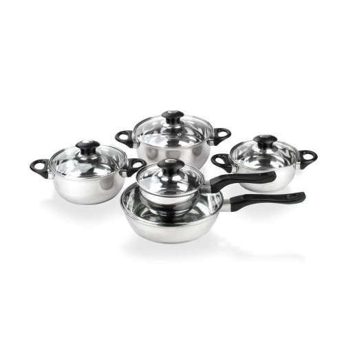 10dílná sada nerezového nádobí Glory, sada obsahuje: hrnec s poklicí 16 x 7,5 cm, hrnec s poklicí 18 x 8,5 cm, hrnec s poklicí 20 x 9,5 cm, pánev s poklicí 22 x 6 cm, rendlík s poklicí 14 x 6,5 cm, materiál - nerez 201, skleněné poklice. Hrnce lze používat na všechny typy varných desek včetně indukce.