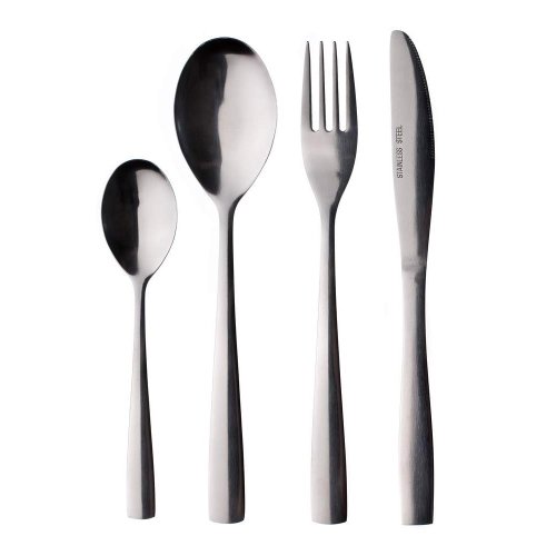 24dílná sada příborů DESMA. Sada obsahuje: 6x polévkovou lžíci, 6x vidličku, 6x jídelní nůž a 6x čajovou lžičku . Povrchová úprava lesk, síla nerezi: lžíce 1,8mm, vidlička 1,8mm, čajová lžička 1,5 mm, nůž 3 mm.