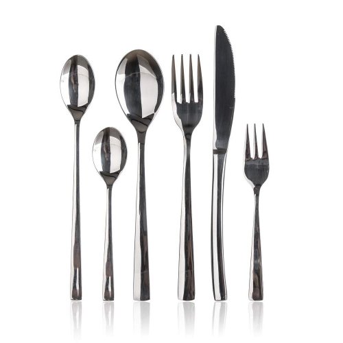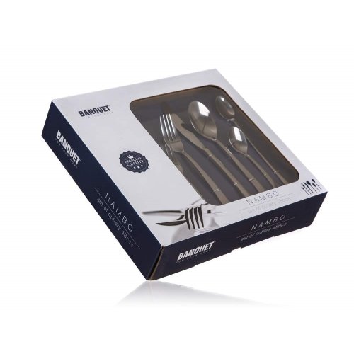 Sada nerezových příborů NAMBO, 48 ks obsahuje 8x jídelní nůž, 8x jídelní vidličku, 8x jídelní lžíci, 8 x čajovou lžičku, 8x desertní vidličku, 8x latte lžičku. Materiál nerezová ocel 18/0.