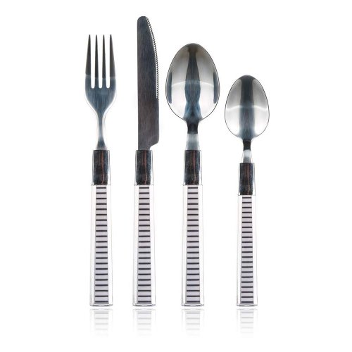 Sada příborů LINES 24 dílů obsahuje: 6x polévkovou lžíci, 6x vidličku, 6x jídelní nůž a 6x čajovou lžičku. Povrchová úprava lesk, nerez 18/0 o síle 1,8 mm, plastové držadlo s dekorem. Příbory nejsou vhodné do myčky nádobí.