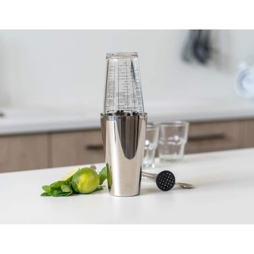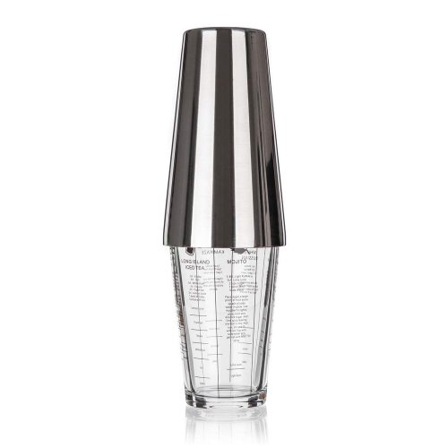 Nerezový šejkr na koktejly AKCENT je vhodný pro přípravu míchaných alkoholických i nealkoholických nápojů. Objem: nerezový díl 830 ml, skleněný díl: 450 ml. Výška: nerezový díl 16 cm, skleněný díl: 14,5 cm.