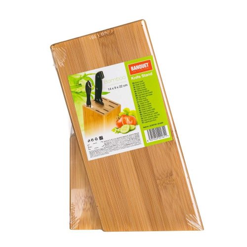 Stojan na nože z kvalitního bambusového dřeva o rozměrech 14 x 9 x 22 cm. Stojan je určen pro 6 ks kuchyňských nožů různých velikostí a ocílku.