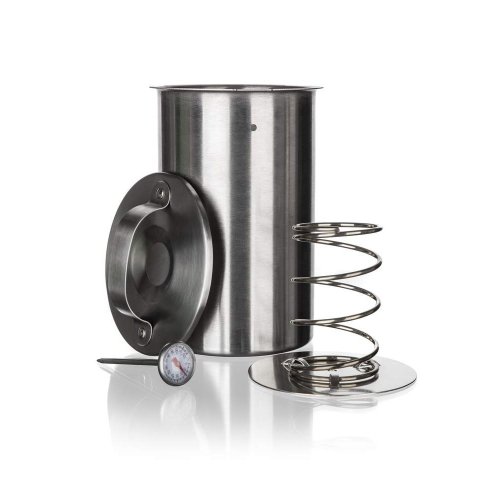 Šunkovar nerezový AKCENT 1,3 l slouží k výrobě a vaření domácí šunky, která je chutově nesrovnatelná s kupovanou šunkou. V šunkovaru si vyrobíte cca 1 kg domácí šunky bez konzervantů, umělých barviv a jiných chemických příměsí. Balení obsahuje: hrnec, víčko, přítlačná pružina a teploměr. Vnější i vnitřní povrchová úprava je broušený nerez, rozměry jsou 19 x 10 cm.