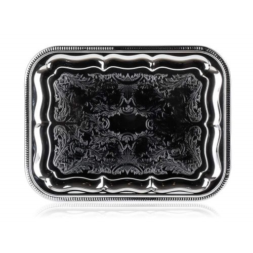 Tác hranatý 41 x 31 cm AKCENT, pochromovaný kovový tác s ozdobným gravírováním, síla materiálu 0,35 mm.