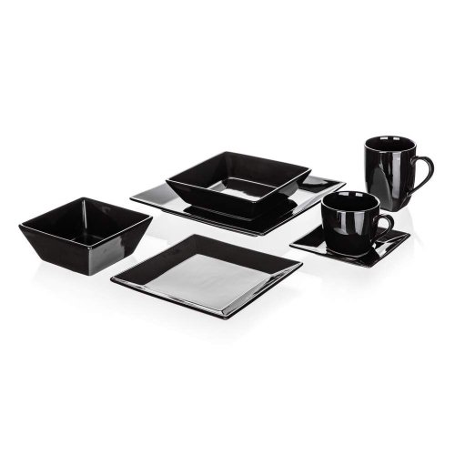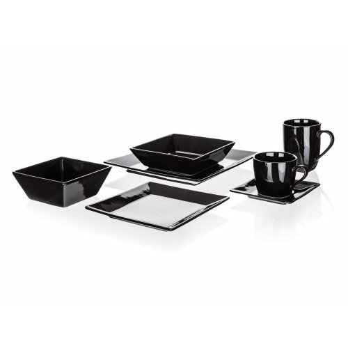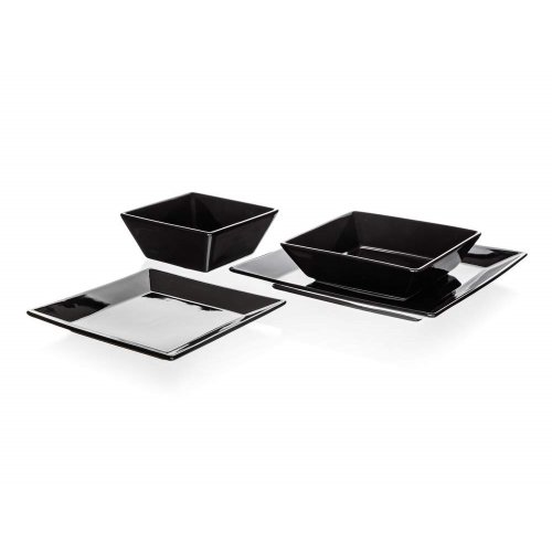 Talíř mělký MITO 25 x 25 cm v černé barvě je vhodný pro podávání různých pokrmů. Možnost doplnit o hrnek, misku nebo šálek s podšálkem ve stejném dekoru. Talíř lze používat v mikrovlnné troubě a mýt v myčce na nádobí.