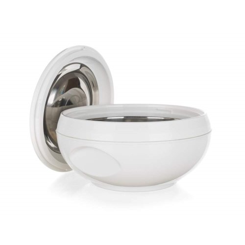 Termohrnec s poklicí AVANZA 1,5 l, barva bílá je praktický pro uchovávání teplých pokrmů. Ocení ho hlavně kuchaři a kuchařky při uskladnění hotových pokrmů před samotným servírováním.Termohrnec se vyrábí v několika velikostech. Vnitřek hrnce tvoří nerezová vložka, výplň mezi stěnami je z PUR pěny pro zachování vynikající izolace při skladování či přenášení potravin.
