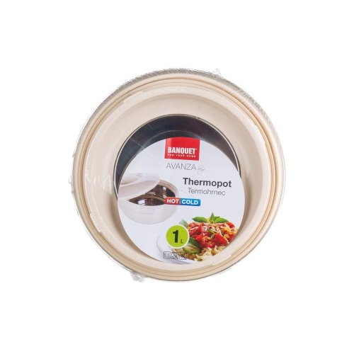 Termohrnec s poklicí AVANZA 1 l béžový, je praktický pro uchovávání teplých pokrmů. Ocení ho hlavně kuchaři a kuchařky při uskladnění hotových pokrmů před samotným servírováním.Termohrnec se vyrábí v několika velikostech. Vnitřek hrnce tvoří nerezová vložka, výplň mezi stěnami je z PUR pěny pro zachování vynikající izolace při skladování či přenášení potravin.