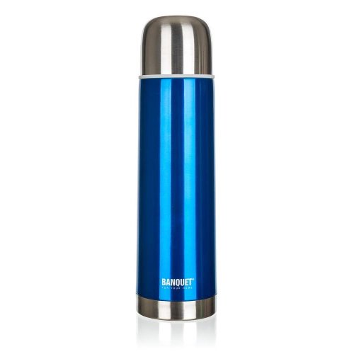 Nerezová termoska AVANZA Blue 0,5 l ve dvouplášťovém provedení, je vhodná pro horké a studené nápoje. Vnější strana je opatřena metalickým povrchem. Plastový uzávěr - clip pro snadné použití (jedním stiskem se termoska otevře, druhým zavře), víčko termosky lze použít jako pohárek na pití. Nerezové termosky jsou velmi odolné a bezpečné, nehrozí rozbití vložky či opaření při manipulaci. Teplotní pokles je závislý na teplotě nápoje při plnění, množství nápoje a teplotě okolí.
