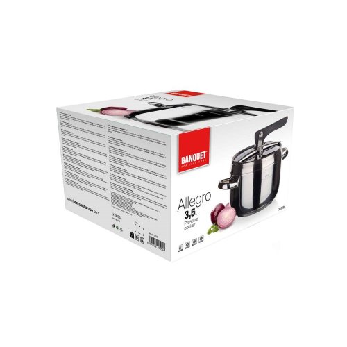 Nerezový tlakový hrnec 3,5 l s pákovým uzávěrem, průměr 20,8 cm, výška 13 cm, nerez 18/0, tloušťka stěny 0,6 mm, 2 ventily, silné sendvičové dno. Víko obsahuje dva ventily, hlavní pracovní ventil a pomocný / bezpečnostní ventil. Tlakový hrnec je určen pro rychlou přípravu pokrmů a lze jej používat na všechny typy varných desek vč.indukce. Víko tlakového hrnce obsahuje hlavní pracovní ventil a pomocný ventil pro případ zanešení pracovního ventilu, což činí hrnec max.bezpečný ! Hrnec je vyroben z pevného materiálu, má silné dno a lze ho používat na všechny typy varných desek.