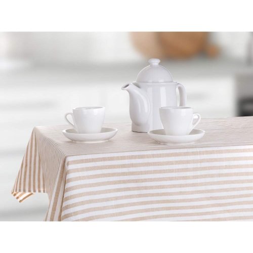 Ubrus DENIM Cappuccino je velmi užitečná věc v domácnosti a dodá vašemu stolování šmrnc. Ubrus je vyroben z 85 % polyesteru a 15 % bavlny. Rozměry: 140 x 180 cm, váha 500 g.