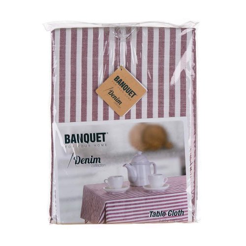 Ubrus DENIM Red je velmi užitečná věc v domácnosti a dodá vašemu stolování šmrnc. Ubrus je vyroben z 85 % polyesteru a 15 % bavlny. Rozměry: 140 x 180 cm, váha 500 g.