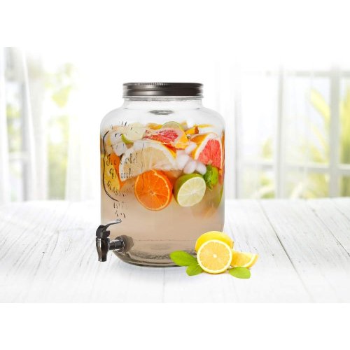 Skleněný zásobník na nápoje WALT o objemu 8 l slouží k servírování osvěžujících nápojů na oslavách a letních párty. Zásobník je vyroben z kvalitního čirého skla a je opatřen praktickým plastovým kohoutkem pro dávkování nápojů. Zásobník je určený k podávání pouze chladných a svěžích letních nápojů typu domácí limonáda, ovocný džus, ledový čaj a podobně. Široké hrdlo umožňuje do nádoby pohodlně vkládat led nebo kousky ovoce. Hloubka výrobku je včetně ventilu. V balení 2 kusy těsnění.