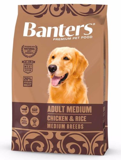 Banters Adult Medium Chicken & Rice obsahuje pouze přírodní konzervanty antioxidanty.