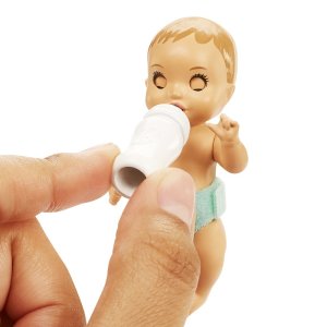 Zahrajte si hru na hlídání dětí s panenkou Skipper™, panenkou miminka a tematickými doplňky. Tento herní set obsahuje postýlku s kolotočem a dalšími doplňky, které usnadňují uspávání miminka. Dejte miminku lahvičku a sledujte, jak se jeho oči pomalu zavírají a miminko usíná. Když lahvičku z pusinky vyndáte, miminko se zase "probudí". Na postýlce je umístěn kolotoč a nechybí ani medvídek, pohádková knížka a dečka na přikrytí. Panenka Skipper™ má na sobě tílko a sukni a miminko látkovou plenku. Panenka neumí samostatně stát. Barvy a vzhled výrobku se mohou lišit.
