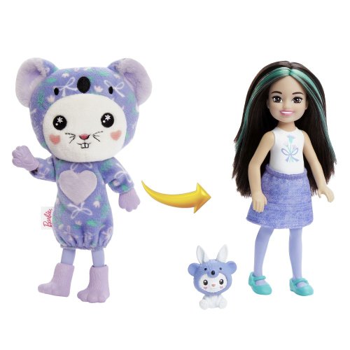 Tato panenka Barbie® Cutie Reveal™ Chelsea v kostýmu potěší děti roztomilým kostýmem a překvapením při rozbalování, které zahrnuje panenku Chelsea™, mini zvířátko, stylové módní doplňky, možnost používání 2 v 1 a hru se změnou barev. Prodávají se samostatně dle aktuální nabídky. Panenky neumí samostatně stát. Barvy a vzhled výrobku se mohou lišit.