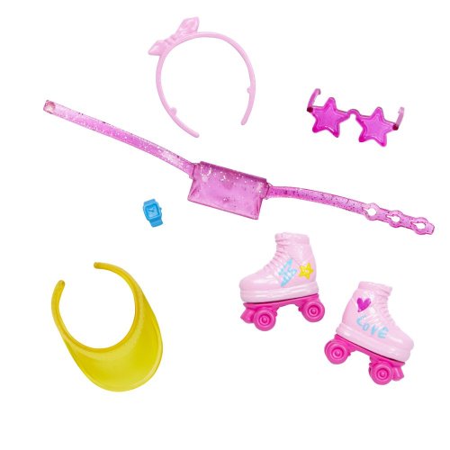 Se svěžím vzhledem, stylovými doplňky a štěněcím kamarádem po boku je tato Barbie® Deluxe módní panenka - trendy bruslařka připravena na nejrůznější dobrodružství! Panenka Barbie® má na sobě volánkovou halenku a sportovní pastelové šortky. Má kudrnaté černé afro vlasy a na nohou obuté rozkošné růžové kolečkové brusle! Barevné doplňky umocňují její módní outfit: čelenka s mašlí, žlutý kšilt, hodinky a fialová taška s páskem. Na všech jejích výletech se k panence Barbie® přidává roztomilé štěňátko! Je oblečená pro nespočet aktivit - od zmrzliny s kamarádkami na promenádě až po bruslení s pejskem v parku. Panenka neumí samostatně stát. Barvy a vzhled výrobku se mohou lišit.