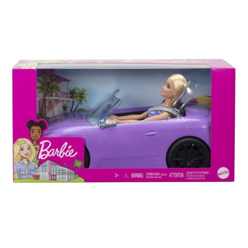 Děti mohou vyrazit na cestu za zábavou s panenkou Barbie® a jejím fialovým kabrioletem! Tento herní set panenky a vozidla obsahuje stylový sportovní kabriolet, s místem pro dvě osoby a realistickými detaily, jako jsou matně černá mřížka chladiče a kola, bezpečnostní pásy a stříbrné doplňky. Mezi zábavné doplňky s typickým stylem Barbie® patří personalizovaná poznávací značka a emblém na kapotě se siluetou Barbie®. V módních šatech s potiskem palmových listů a stylových bílých sandálech je panenka Barbie® připravena na jakékoli dobrodružství, které si děti vymyslí. Panenka neumí stát samostatně. Barvy a vzhled výrobku se mohou lišit.